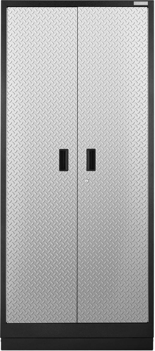 The Premier Pre-Assembled 84" Tall Cabinet comes with four full-width shelves. The two large doors lock for added security. When you need to get your cabinets off the floor, the cabinet conveniently mounts onto Gladiator® Wall Systems.Read More
